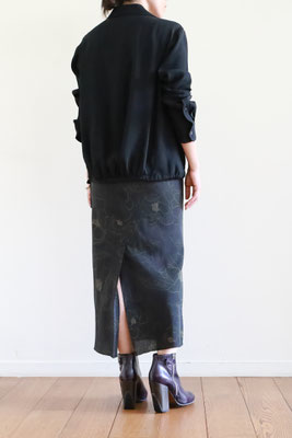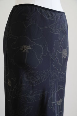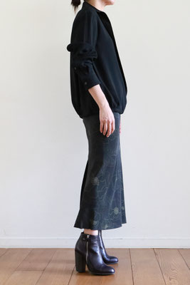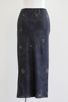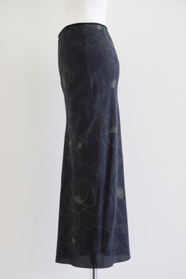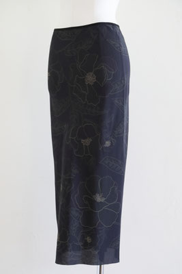 【 商品の特徴 】 ドリス・ヴァン・ノッテンの定番型ロングスカート「SATI」。細く長いシルエットと、後中心からスソへ向かって入れられた生地の切り替えのラインが特徴です。プリントは、ブラックをベースにペンシルスケッチのようなフローラルが描かれています。薄くて柔らかいシルク生地で裏地が付いていませんので、気になる場合は、お手持ちのペチコートをご利用ください。