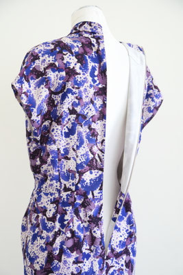 【 商品の特徴 】 ドリス・ヴァン・ノッテンの定番型ドレス「DILIAN」です。カシュクール型のトップ、ドレープ感を多用したボトムのデザインが特徴。背中心からヒップにかけてコンシールファスナー。縮緬のような表面に凹凸感がある、蘭をモチーフとした柔らかなポリエステルクレープ生地はストレッチ性もあります。肌触りの良いシルクサテンの裏地が付けられており、透け感や身体のラインを気にせずにご着用いただけます。ホワイトをベースにブルーとパープルの色合いです。