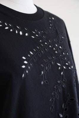 【 商品の特徴 】 ドリス・ヴァン・ノッテンの定番型カットソー生地ドレス「HEGELSON」です。前後と左肩にの広範囲に、欄をモチーフとした刺繍が施されています。シルエットはボックスに近くストンとした落ち感があります。コットン生地は適度な厚みがあり、身体のラインをあまり気にせずにご着用いただけます。刺繍の部分は透けますので、ブラトップなどをインしていただくのが、おすすめです。