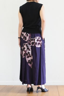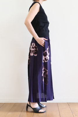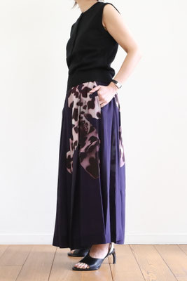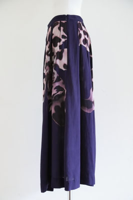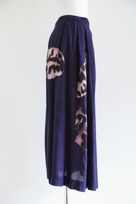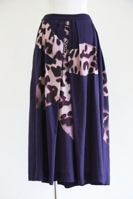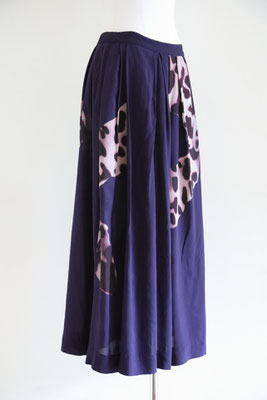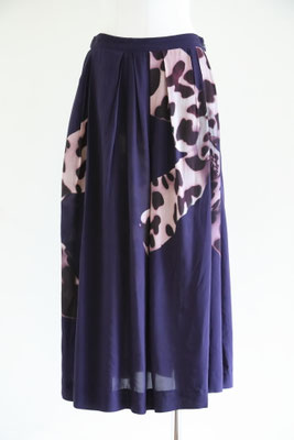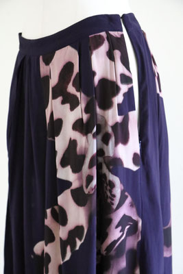 【 商品の特徴 】 ドリス・ヴァン・ノッテンの定番デザインのフレアープリーツスカート「SONI」が、とても軽くて柔らかな薄手のレーヨン生地でつくられています。レオパード柄にも見える大きなプリントは、蘭の花びらの拡大画像です。ネイビーブルーに、淡いピンク系の色合いが美しい仕上がりです。ウエストの両サイドにポケットが付けられています。スソの方は若干の透け感がございますので、気になる場合は、お手持ちのペチコートをご利用ください。