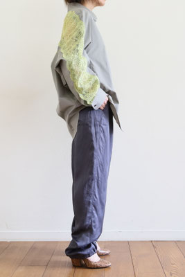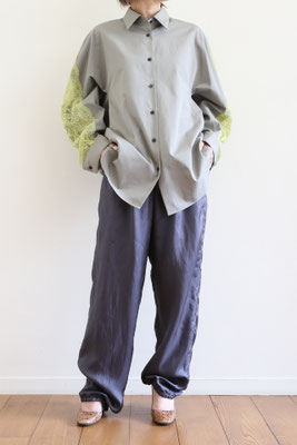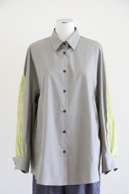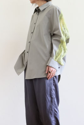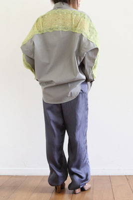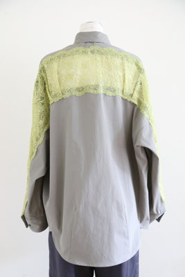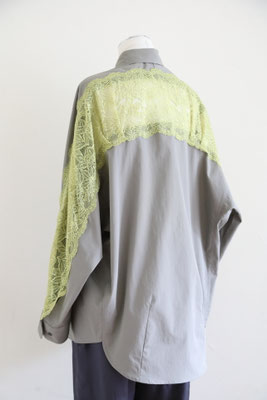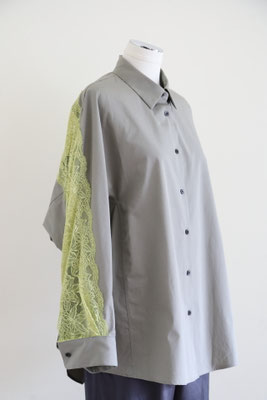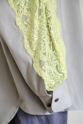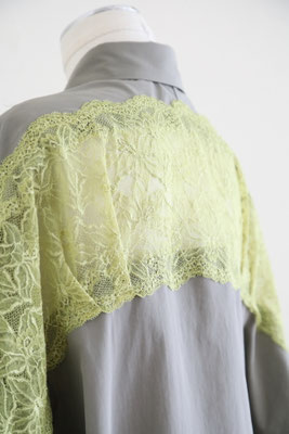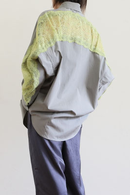 【 商品の特徴 】 コクーンシルエットのオーバーサイズシャツに、背中からアームホールにかけてストレッチレースがミックスされています。柔らかなカーキ系のセメントカラーに、イエローのレースの色の組み合わせ。さらっとした肌触りのコットンポプリン生地で、快適にご着用いただけます。