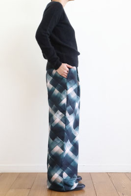【 商品の特徴 】ドリス・ヴァン・ノッテンの定番型スウェット生地のパンツです。今シーズンは、スプレーのようなグラデーションのチェックをデジタルプリントされています。ウエストはインベルにドローストリング仕様。スウェット生地ながら、ワンタックいれられた立体感のあるシルエット、ウエストサイドポケット、ヒップポケットは玉縁付きという、本格的なデザインが特徴です。