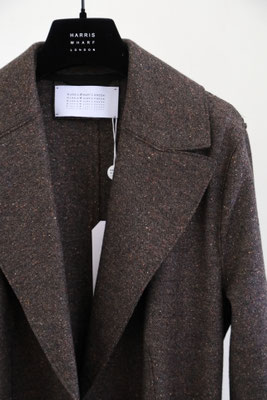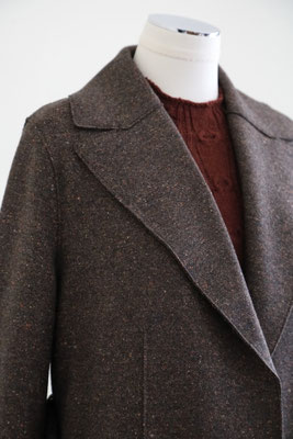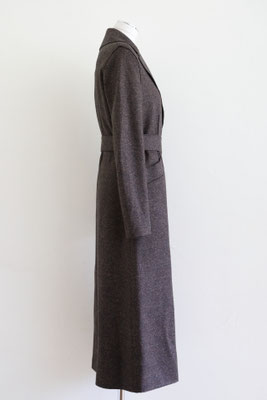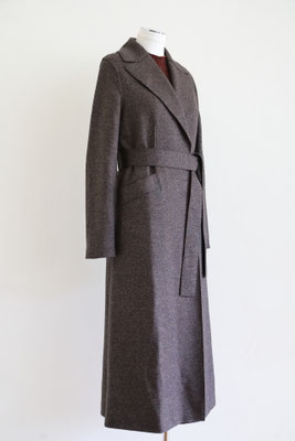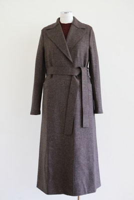 【 商品の特徴 】 裏地なしのドネガルウール(アイルランドのドネガル地方発祥のネップツイード)を使用したロングマキシコートです。ストレートなシルエットとフィット感があるロングコート。前立てにボタンはなくとも布のベルトで絞っていただきます。長く細いシルエットが端正で洗練された雰囲気です。裏地が無いこともあり、非常に軽量な仕上がりです。イタリア製生地・イタリア縫製の一貫生産で、価格を超えた質感を実現しています。