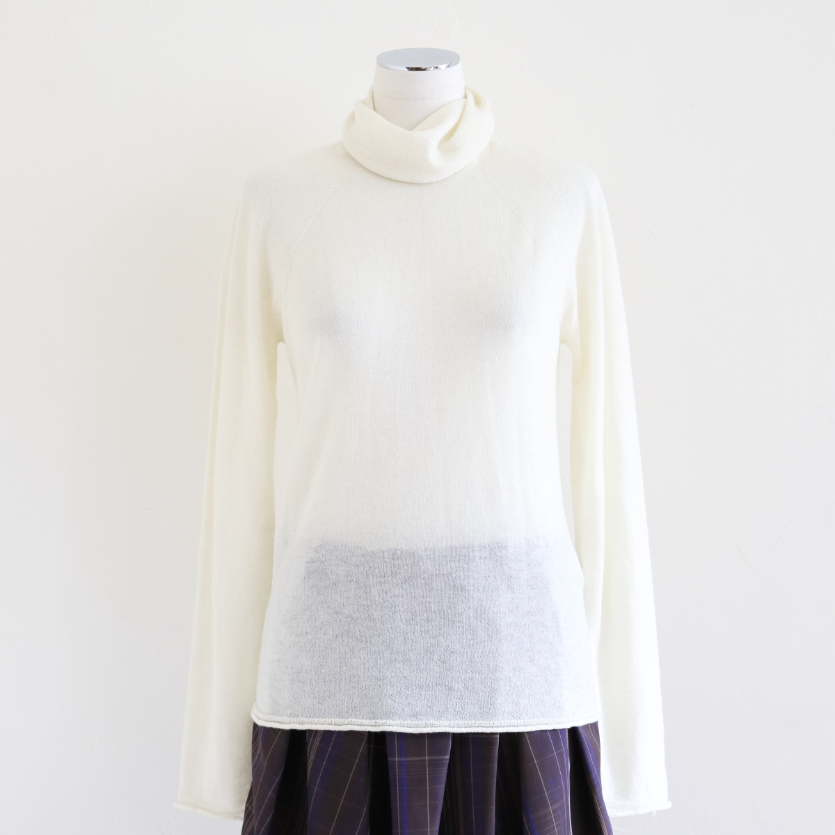 【 商品の特徴 】 イタリア製スーパーファインメリノにカシミヤをブレンドしたハイゲージニットでつくられたタートルネックセーターです。ホールガーメント製法によるシームレスな仕上がりで、着心地をアップさせています。身体のラインに付かず離れずの、少しフィットするシルエット。とても薄くて軽やかな仕上がりで、単品で着たときのシルエットの美しさ、ジャケットやコートのインナーとして着たときのすっきり感が、両立しています。