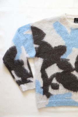 【 商品の特徴 】 ハンドメイドインターシャ(手作業での編み込み)でつくられた抽象的なモチーフの柄が特徴のセーターです。たっぷりとした身幅と短めの着丈。ふんわりとして程よい厚みがある編地で、真冬でも暖かくご着用いただけます。