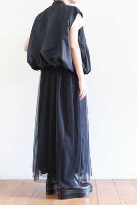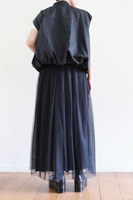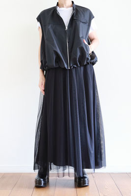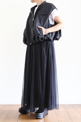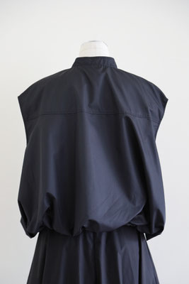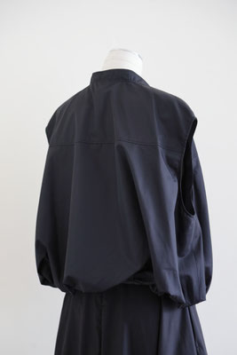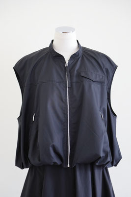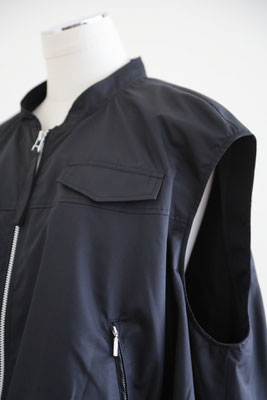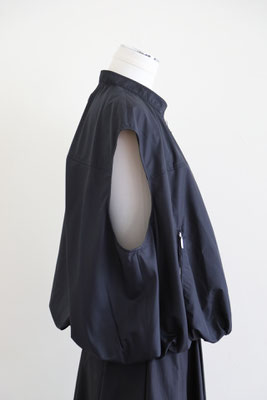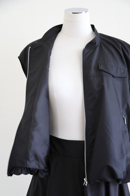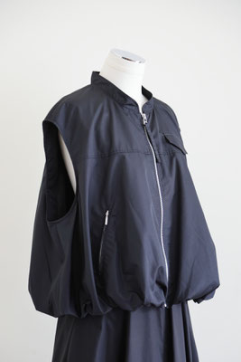 【 商品の特徴 】 柔らかな撥水加工ポリエステル生地でつくられたスリーブレスボンバージャケットです。スソの裏地との縫い合わせにギャザーをよせて空気で膨らんだような、ふわんりとした立体的シルエットにデザインされています。裏地もつけられているので、防風性も高く、表地と裏地のあいだに空気の層ができるので、自然な暖かさを感じます。ジッパー付きウエストポケットなど、機能性も高く、カットソーやニットとのレイヤードにおすすめです。