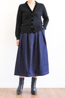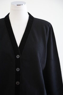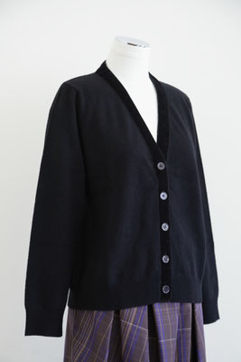 【 商品の特徴 】 襟開きのまわりにベルベットを縫い付けたカーディガンです。少しゆったりとした身幅と短めの着丈のシルエットデザイン。中肉の厚さの編地のウール・カシミヤ素材で、秋冬の長い期間ご着用いただけます。ロンドンのスタジオでデザインされ、モンゴルで採取したカシミヤ原毛を、モンゴルのウランバートルで生産することにより、コストの削減とモンゴルの人々との仕事の協業を実現しています。