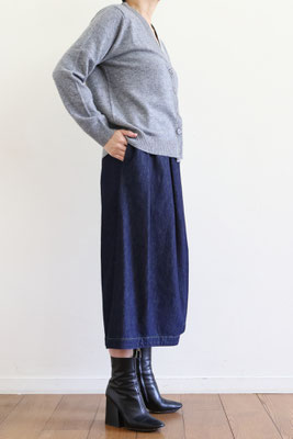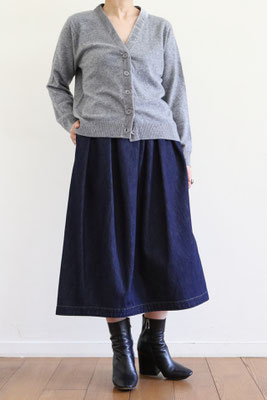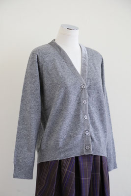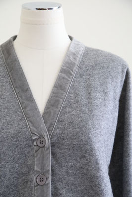 【 商品の特徴 】 襟開きのまわりにベルベットを縫い付けたカーディガンです。少しゆったりとした身幅と短めの着丈のシルエットデザイン。中肉の厚さの編地のウール・カシミヤ素材で、秋冬の長い期間ご着用いただけます。ロンドンのスタジオでデザインされ、モンゴルで採取したカシミヤ原毛を、モンゴルのウランバートルで生産することにより、コストの削減とモンゴルの人々との仕事の協業を実現しています。